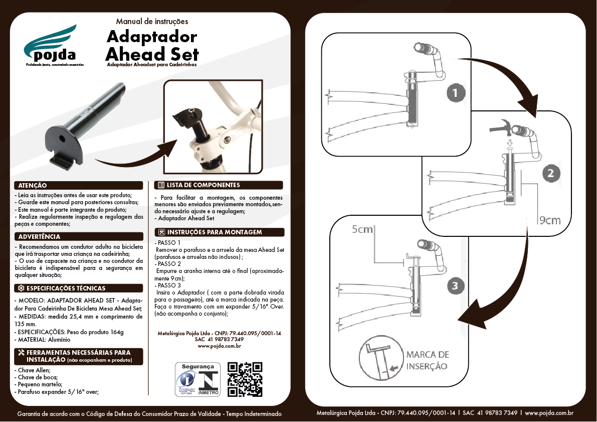 Orienta-se a instalação deste adaptador em oficina de bicicletas.